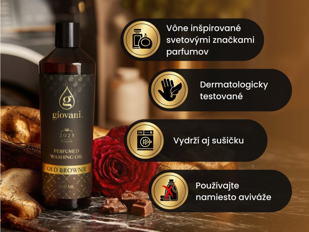 Giovani® je exkluzívna a luxusná značka parfémov na pranie. Na ich vysokej kvalite sme si dali veľmi záležať. Pri vývoji týchto vôní bolo pre nás dôležité dosiahnuť ich silnú intenzitu a dlhú trvácnosť, aby sme mohli o Giovani® hovoriť ako o tej najkvalitnejšej značke parfémov na pranie na trhu. Ich veľkou výhodou je, že nezanášajú práčku, nezanechávajú mazľavý povlak a škvrny na oblečení. Vďaka obsahu niektorých látok sa naše oleje starajú aj o farbu vašej bielizne. Sú vegánske, neobsahujú dioxán, chlorán sodný, SVHC, parabény, PBT/vPvB látky, ťažké kovy, tenzidy, znečisťujúce reziduá, mikroplasty ani nanolátky. Výnimočnosť značke Giovani® pridáva aj jej luxusný dizajn. Pýšiť sa môžeme aj dodaním do 24 hodín a rýchlym zákazníckym servisom. |