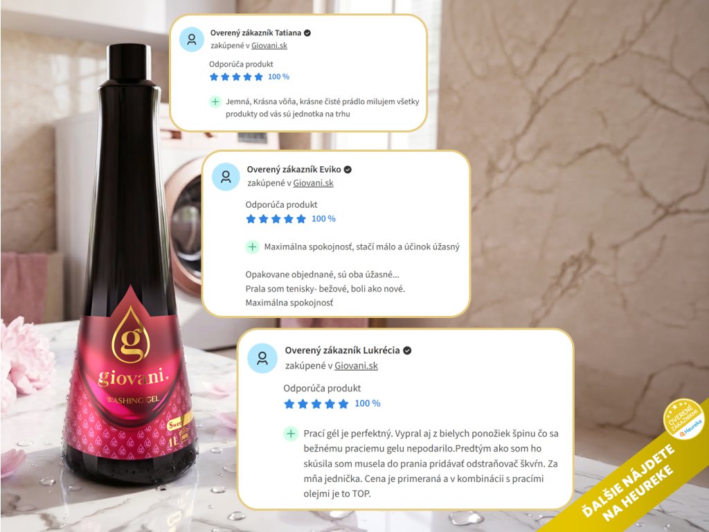 Giovani® je exkluzívna luxusná značka špecializujúca sa na vône. Staviame na prvotriednej kvalite, vďaka čomu sme získali ocenenie Produkt roka 2024, 1.miesto v Heureka Shop roku 2024 v Cene kvality a aj v Cene popularity na Slovensku. Férovosť je jednou z našich kľúčových hodnôt, a preto sme vo všetkých krajinách, kde pôsobíme, zapojení do systémov overených recenzií (na Slovensku je to heureka.sk). Len tie totiž poskytujú skutočný obraz o kvalite produktov a služieb. Za značkou Giovani® stoja stovky tisíc spokojných zákazníkov v Európe, inovatívne a funkčné produkty, na ktoré sa môžete spoľahnúť. |