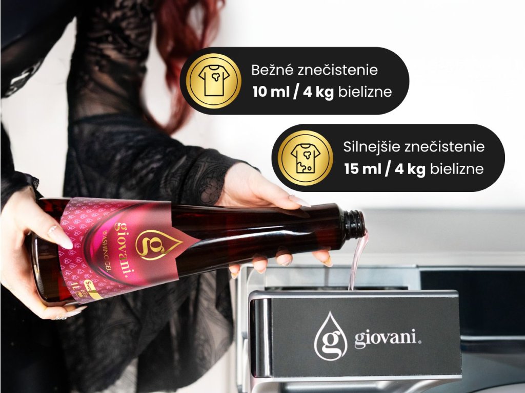 Pranie už nemusí byť len nutnou povinnosťou. S pracím gélom Giovani® SWEET sa stane osviežujúcim zážitkom. Tento vysoko koncentrovaný prací gél dokonale vyčistí vašu bielizeň už pri nízkom dávkovaní a nízkej teplote.